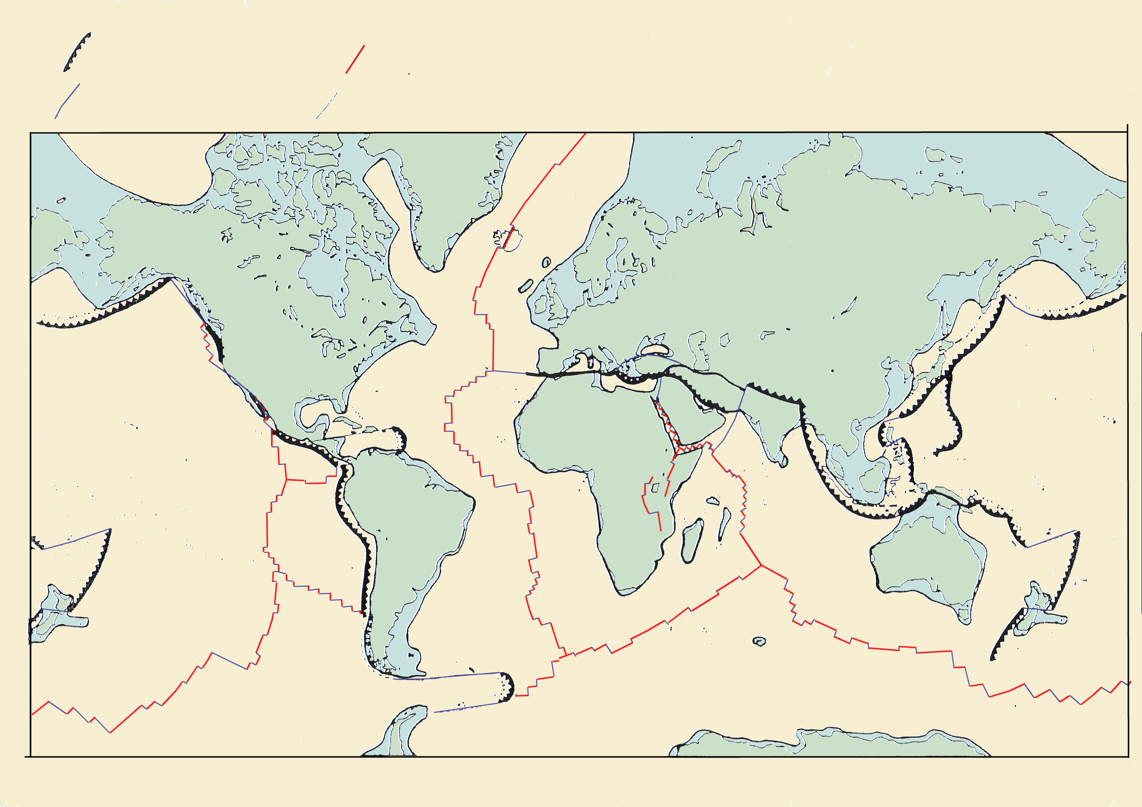| Tectónica de placas La teoría de la Tectónica de Placas es una teoría geológica que explica gran parte de las características de la corteza terrestre. Se desarrolló por varios investigadores a mitad del siglo XX, por tanto es la última de las grandes teorías científicas unificadoras (Evolución, Relatividad, Cuántica ..) |