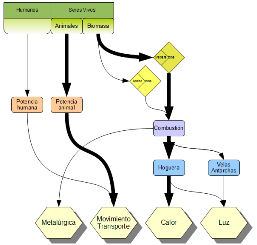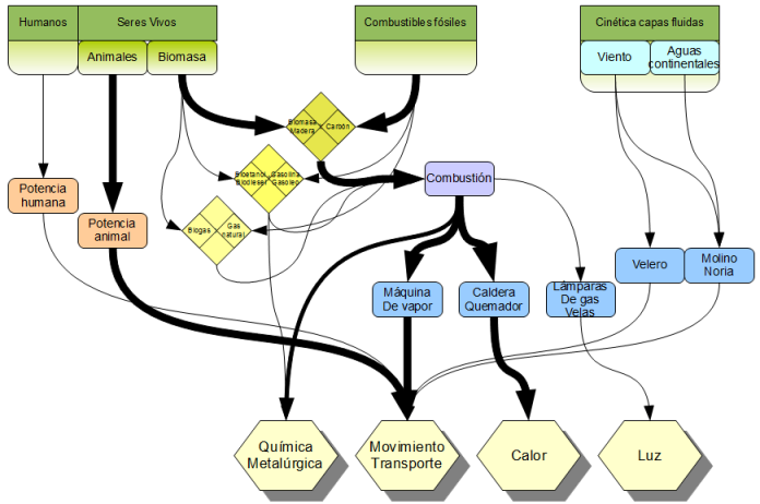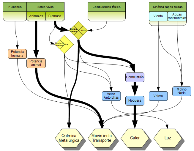 Esquema de utilización de la energía en la antigüedad